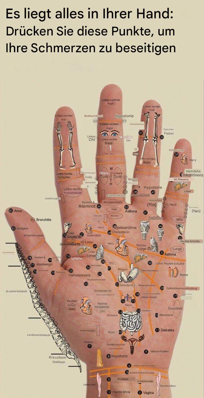 Lokalisiere den Punkt an deinem Daumen, der mit den Schmerzen in deinem Körper verbunden ist. Drücken Sie es 5 Sekunden lang nach unten.