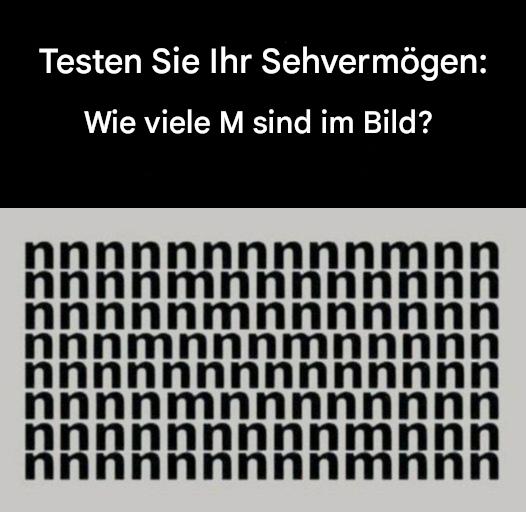 Visuelle Rätsel sind online auf dem Vormarsch, und eines der beliebtesten ist derzeit der berühmte Sehtest. Das Ziel? Suchen Sie die Buchstaben “m”, die in einem Raster mit “n” versteckt sind. Wenn das einfach klingt, denken Sie noch einmal darüber nach! Dieser Test stellt Ihre Aufmerksamkeit, Ihre Geduld und Ihre Fähigkeit, Details zu beobachten, auf die Probe.
