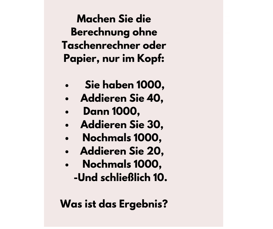 Eine faszinierende Herausforderung: Werden Sie widerstehen können? Eine faszinierende Herausforderung: Werden Sie widerstehen können? Ihr Verstand ist viel mächtiger, als Sie denken, aber er kann manchmal durch kognitive Abkürzungen ausgetrickst werden. Sind Sie bereit, Ihr Gehirn mit einer einfachen Berechnung zu testen? Unterschätzen Sie diese Herausforderung nicht: Sie könnte ungeahnte Facetten Ihrer geistigen Fähigkeiten offenbaren! … Lire la suite