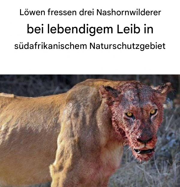 Löwen fressen drei lebende Nashorn-Wilderer in einem südafrikanischen Naturschutzgebiet