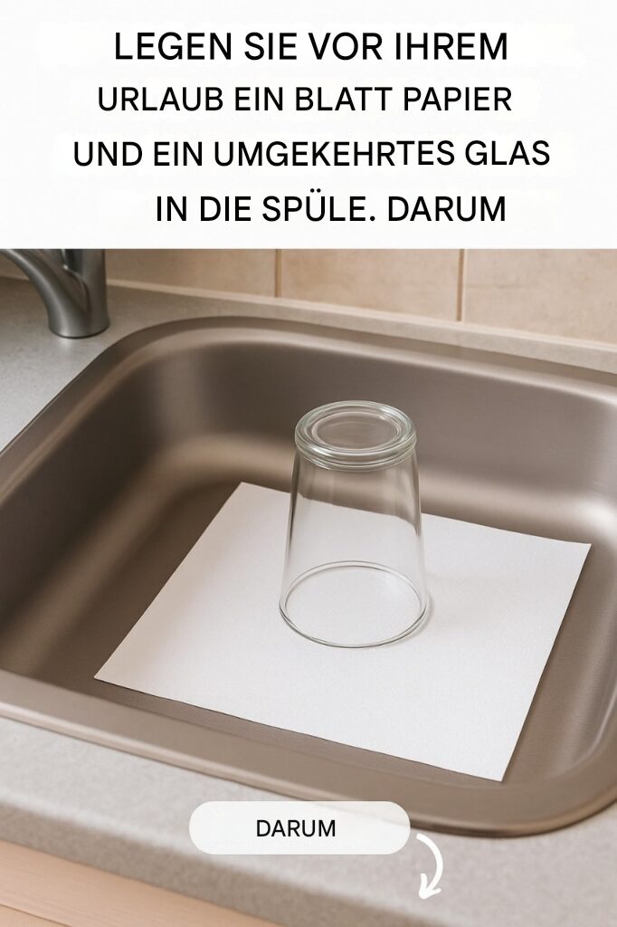 Darum sollten Sie vor dem Urlaub immer ein umgedrehtes Glas und ein Stück Papier in der Spüle liegen lassen